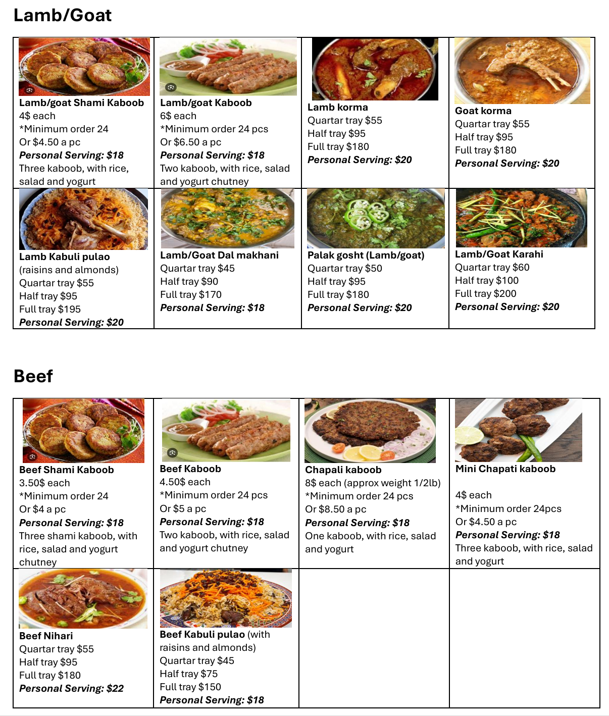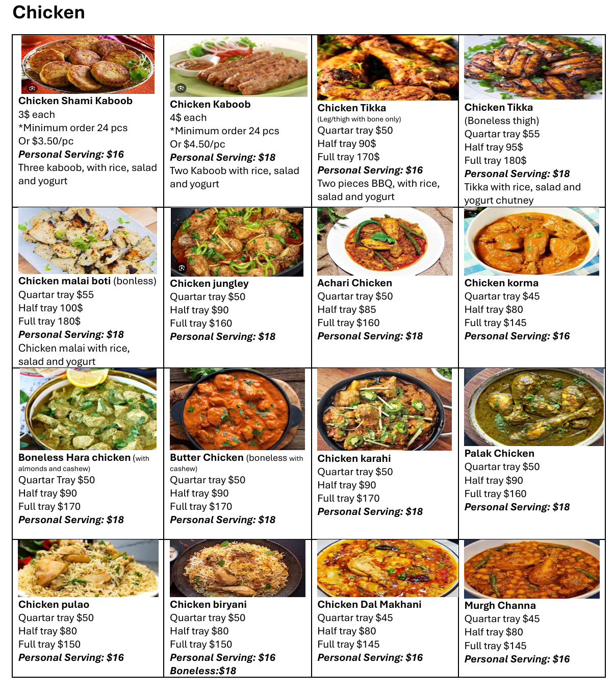 Our Menu